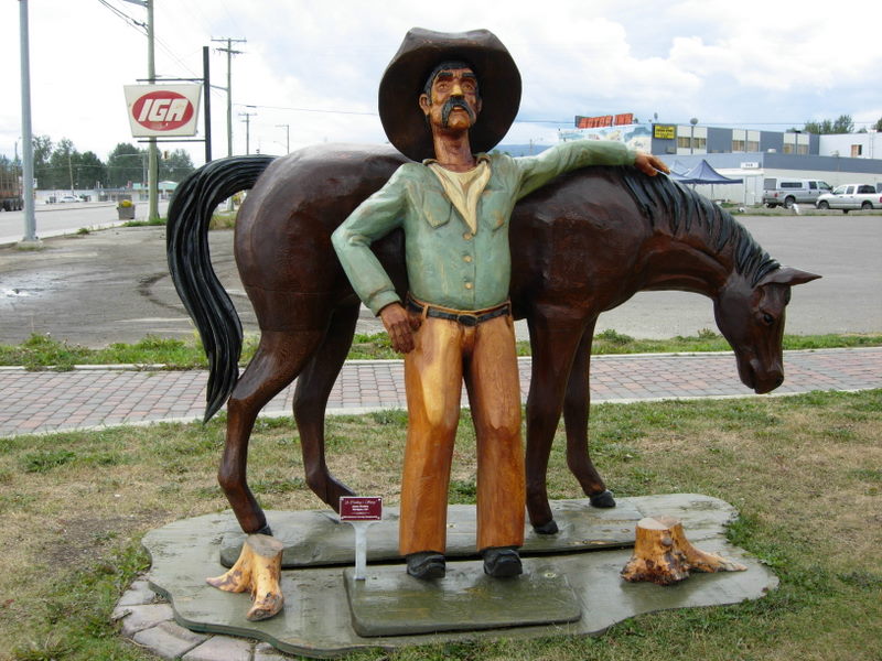 Wednesday, August 25 - We got ready to leave this morning, and Collins had a dead battery in his dinghy, so he had to get the battery charger out. Hopefully, something was just left on, since they didn't unhook the car overnight, and it will charge back up and be fine. We were headed to Chetwynd today, the chain-saw sculpture capital of the world," and on Mazie's to-do list because of her interest in totem poles. There is a loop road to Chetwynd, which bypasses Watson Creek But after a discussion at our rest stop, it was decided to continue on to Watson Creek, thereby completing the Alaska Highway, then driving our dinghy down to Chetwynd tomorrow. That would also allow Collins to get his battery situation resolved.